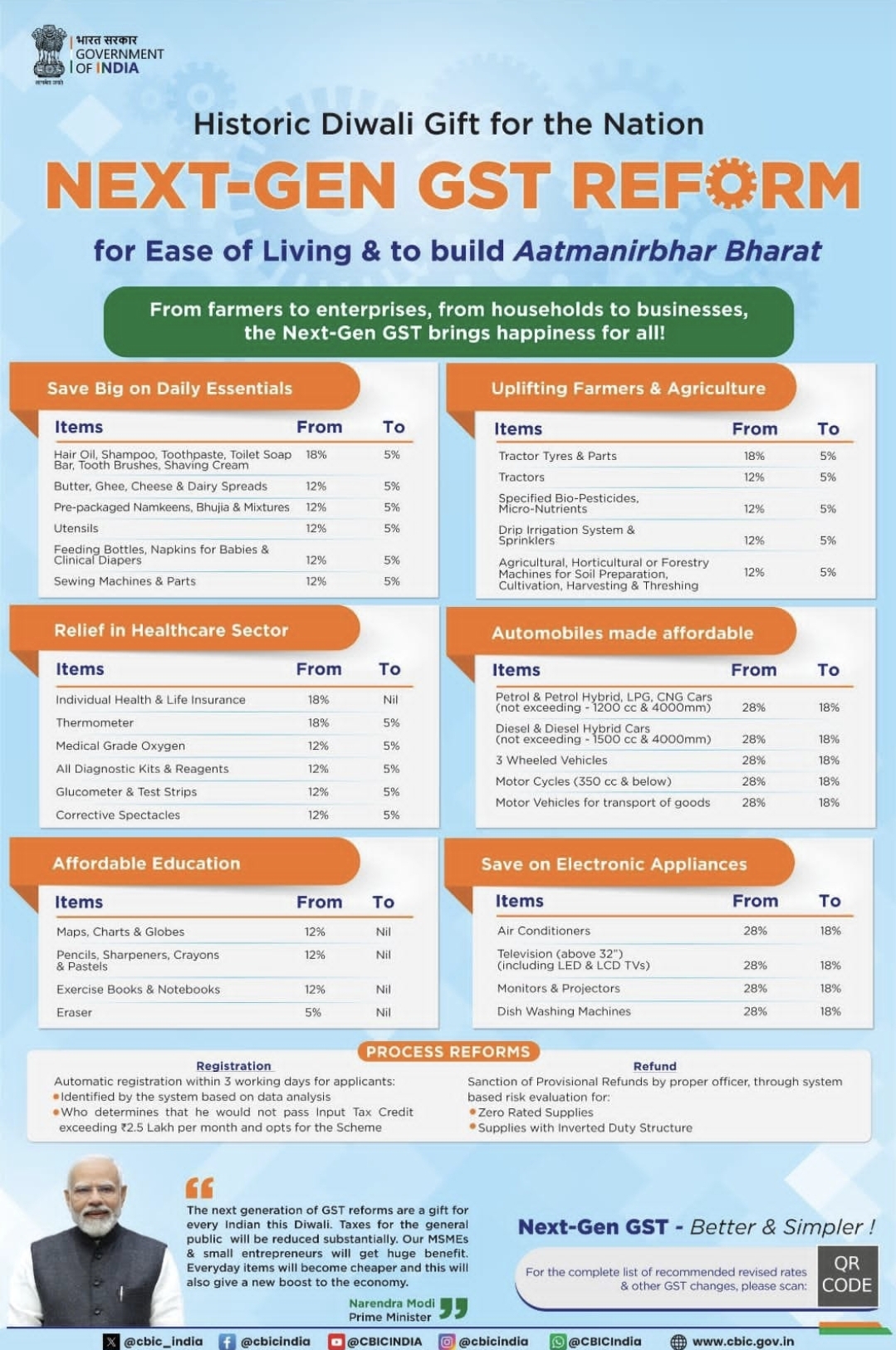 - Relief for the Common Person: GST rates have been slashed on numerous food products, common household goods, and educational items.